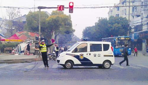 12月29日,坐落鎮江新區丁卯橋路的一根電纜掉落路中,形成交通堵塞,聞訊而來的交警輪番用竹竿托舉線纜30分鐘,保證該路段車輛順暢通行,過往大眾紛繁稱譽交警“托舉哥”。
