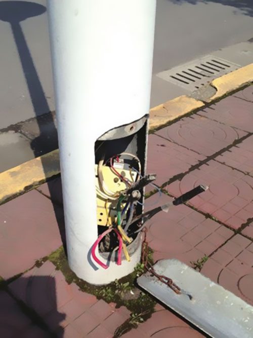 前晚8點,昆明市城市照明控制中心的工作人員途經北京路時,發現從公民中路到春風廣場路段的七八盞路燈都不亮了。工作人員隨行將燈桿旁的檢修井翻開,發現本來埋在地下的路燈電纜都被盜了。