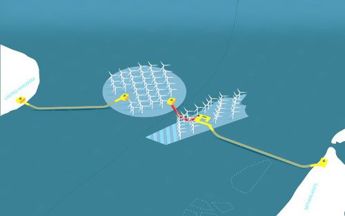 荷蘭指定的海優勢電場IJmuiden Ver的變電站與Vattenfall在英國海岸的一個變電站之間完成互聯將答應更多電力在英國和荷蘭電力商場之間進行買賣。